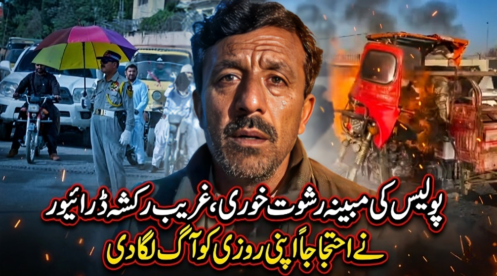 پولیس کی مبینہ رشوت خوری، غریب رکشہ ڈرائیور نے احتجاجاً اپنی روزی کو آگ لگا دی